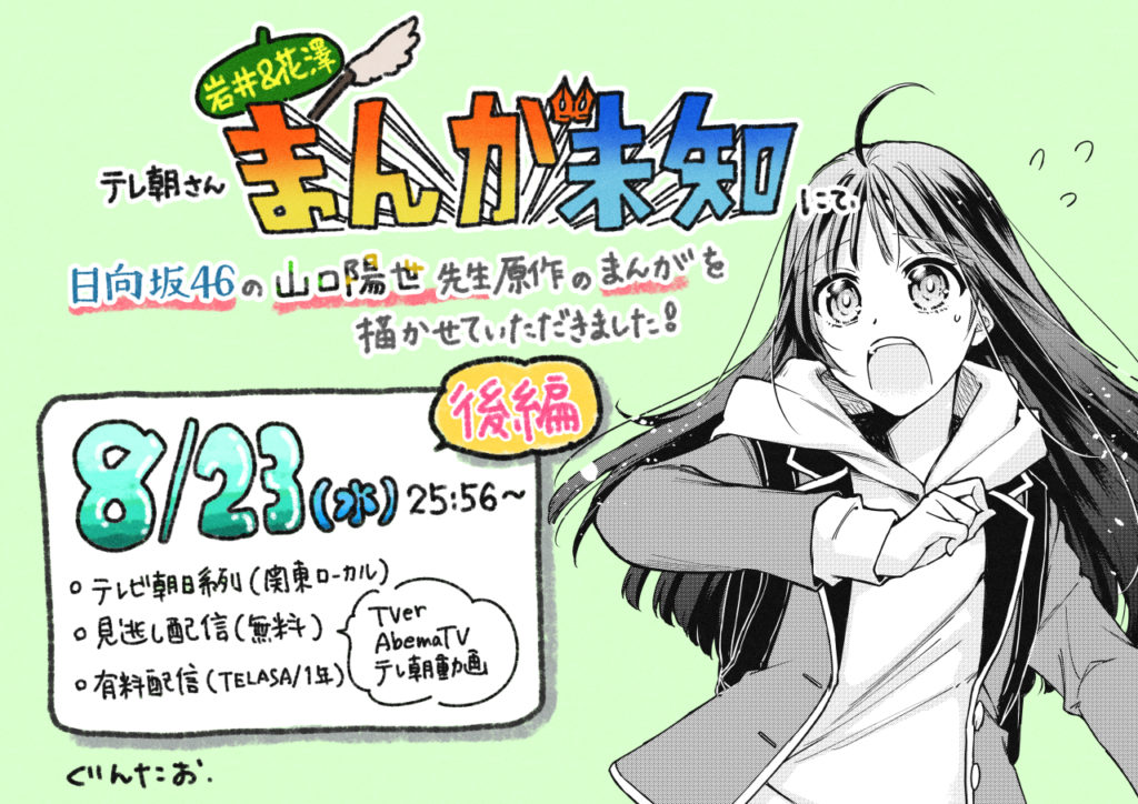 テレ朝(関東ローカル)『まんが未知』様にて日向坂46の山口陽世先生原作で漫画をかかせていただきました!無料で配信されておりますので、記事のラストにあるURLから御覧ください!